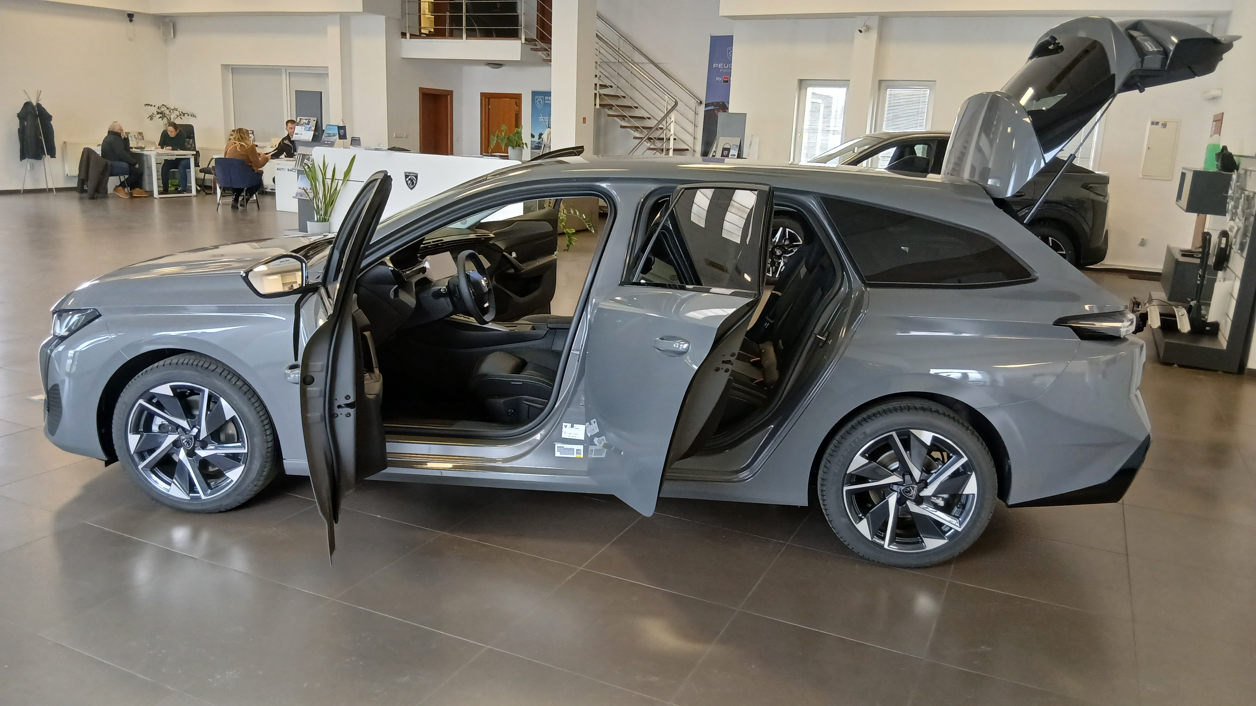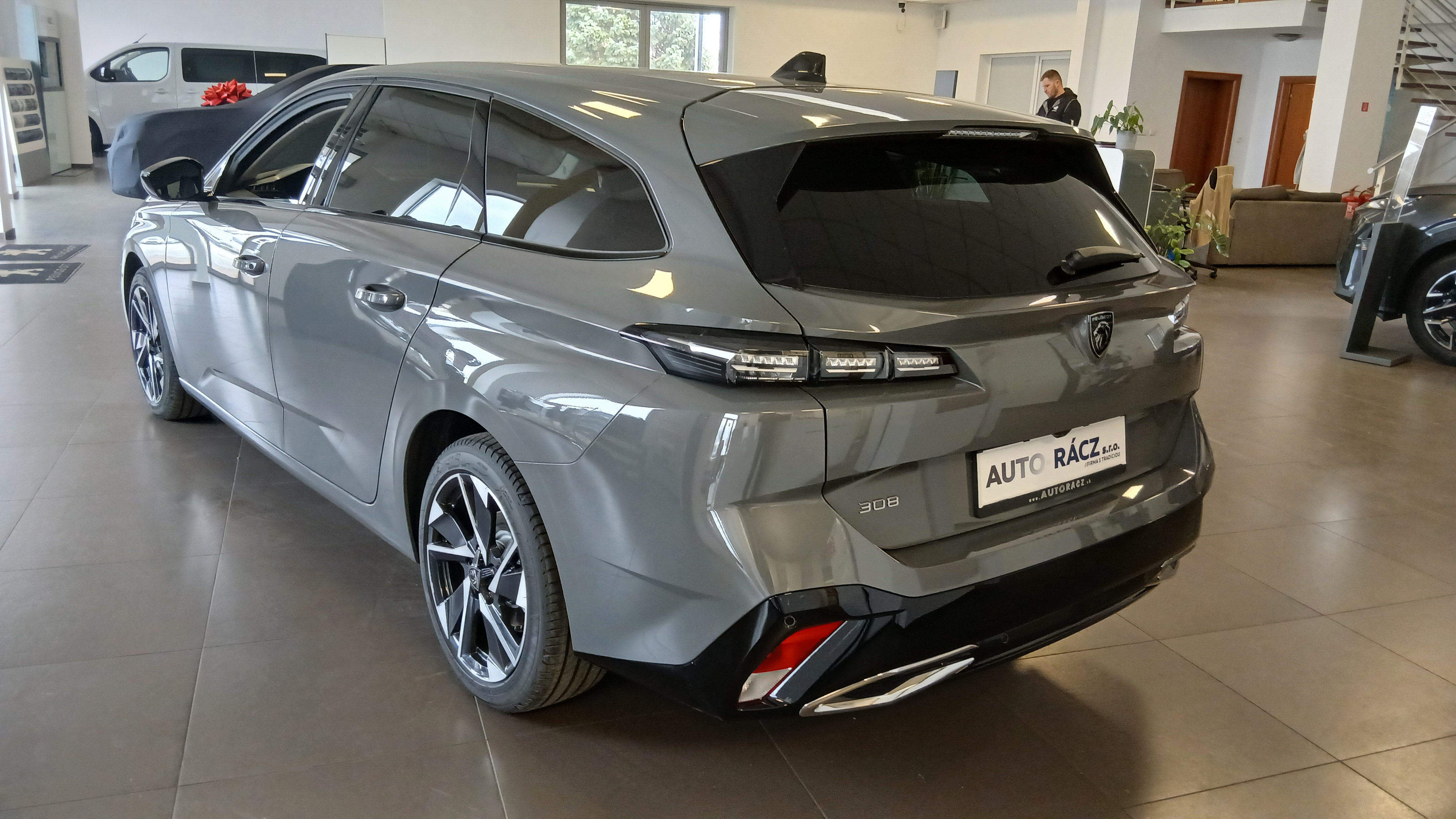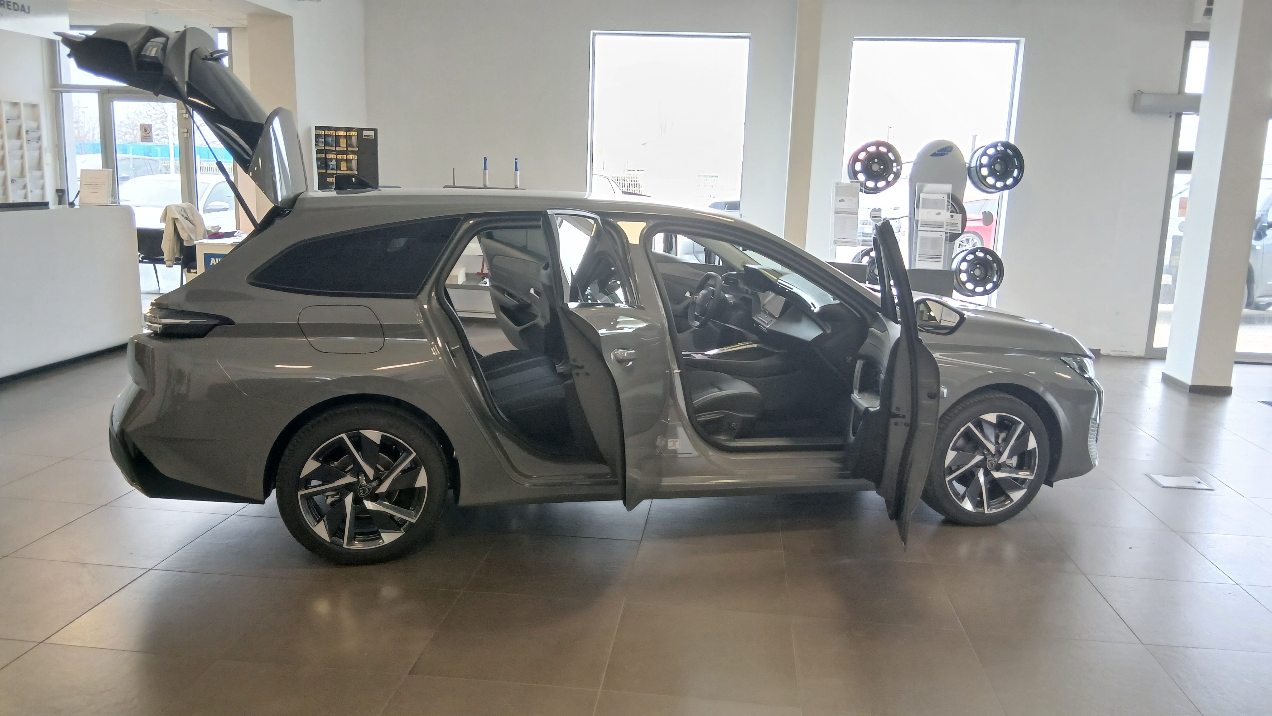 • Výbava: Pohon a technické parametre: Naftový motor s objemom 1499 ccm a výkonom 96 kW (130 k), kombinovaný s 8-stupňovou automatickou prevodovkou (EAT8). Vozidlo je vybavené elektrickou parkovacou brzdou. Bezpečnosť a asistenti: Pack Safety: Zahŕňa automatické núdzové brzdenie (Active Safety Brake), varovanie pred neúmyselným opustením jazdného pruhu a systém sledovania únavy vodiča (Driver Attention system). Zadné parkovacie senzory spolu so zadnou parkovacou kamerou. Tempomat a obmedzovač rýchlosti. Systém rozpoznávania dopravných značiek a úchyty Isofix na zadných sedadlách. Predné, bočné a hlavové airbagy. Svetlá a viditeľnosť: Predné a zadné LED svetlá s automatickým prepínaním diaľkových svetlometov. ◦Pack Visibilité: Obsahuje automatické rozsvietenie svetiel, dažďový senzor a elektrochromatické vnútorné spätné zrkadlo. •Interiér a komfort: Peugeot i-Cockpit: Vyvýšený digitálny 10" prístrojový panel a 10" dotykový farebný displej. Automatická dvojzónová klimatizácia a bezkľúčový systém štartovania. Ergonomické predné sedadlá s tmavým kombinovaným čalúnením FALGO (látka + syntetická koža). Multifunkčný kožený športový volant, ktorý je výškovo a osovo nastaviteľný. Pack Confort: Výklopná opierka rúk vzadu s otvorom na lyže. Konektivita: Rádio s digitálnym DAB tunerom, Bluetooth, 2x USB C a bezdrôtová funkcia Mirror Screen (Apple CarPlay a Android Auto). Exteriér: 17" zliatinové disky CALGARY. Extratónované zadné okná a čierne lesklé lišty bočných okien. Elektricky nastaviteľné, vyhrievané a elektricky sklápateľné spätné zrkadlá. Voliteľná (doplnková) výbava V tejto konkrétnej ponuke sú nad rámec základnej výbavy zvolené tieto položky: Farba: Metalíza Sivá SELENIUM (kód LDM0). Pack Comfort: Rozšírený balík komfortných prvkov (kód J6C8). Pack Vision & Drive Assist + Alarm: Kombinácia pokročilých asistenčných systémov, videnia a zabezpečenia vozidla (kód J6GT). Odnímateľné ťažné zariadenie: (kód AQ05). Deliaca sieťka v batožinovom priestore: (kód NM02). Sada na opravu defektu: (kód LV02)
