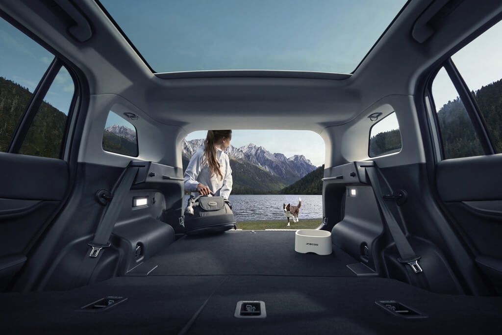 Praktičnosť Jaecoo5 drží krok s jeho atraktívnym dizajnom. Zadné sedadlá delené v pomere 60:40 umožňujú flexibilne kombinovať prevoz pasažierov a nákladu, premyslené úložné priestory zase uľahčujú každodenný život. Štandardný objem batožinového priestoru 480 litrov možno po sklopení zadných sedadiel zväčšiť až na 1 280 litrov.