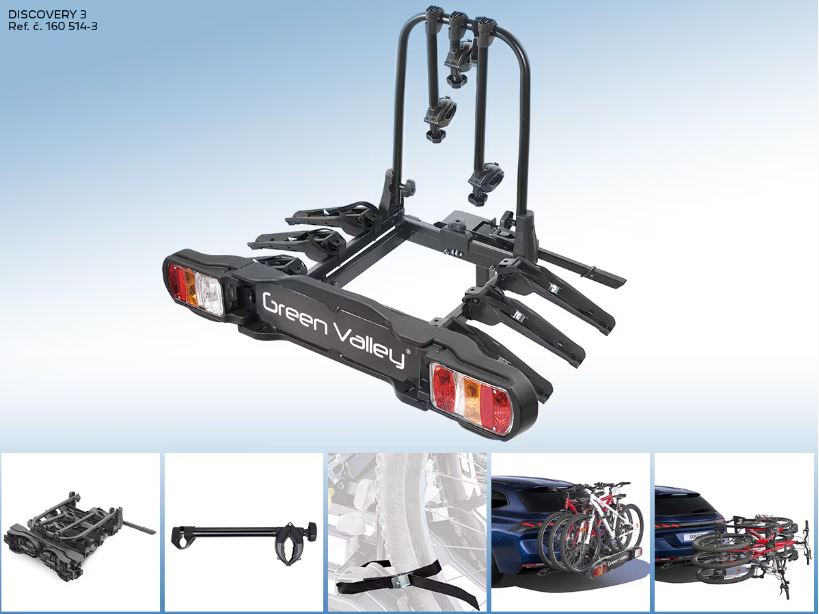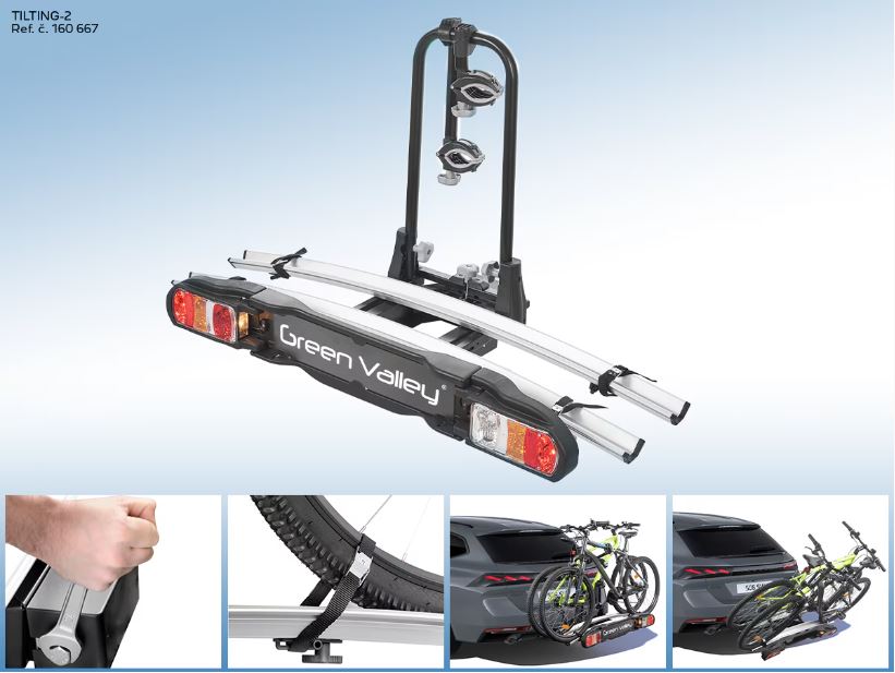 Nosič je skladateľný, vyrobený z vysokopevnostnej ocele a spĺňa najvyššie bezpečnostné normy. Naklápací systém umožňuje otváranie kufra aj s bicyklami a nosičom namontovaným na ťažnom zariadení. Vyklápanie aj na dlhých zadných dverách dodávok. Systém proti krádeži na ťažnom zariadení. Osvetlenie prepojíte prostredníctvom 13-pinového konektora. Vhodný pre širokú škálu bicyklov vrátane elektrobicyklov. Nosnosť až 2 elektrobicykle.