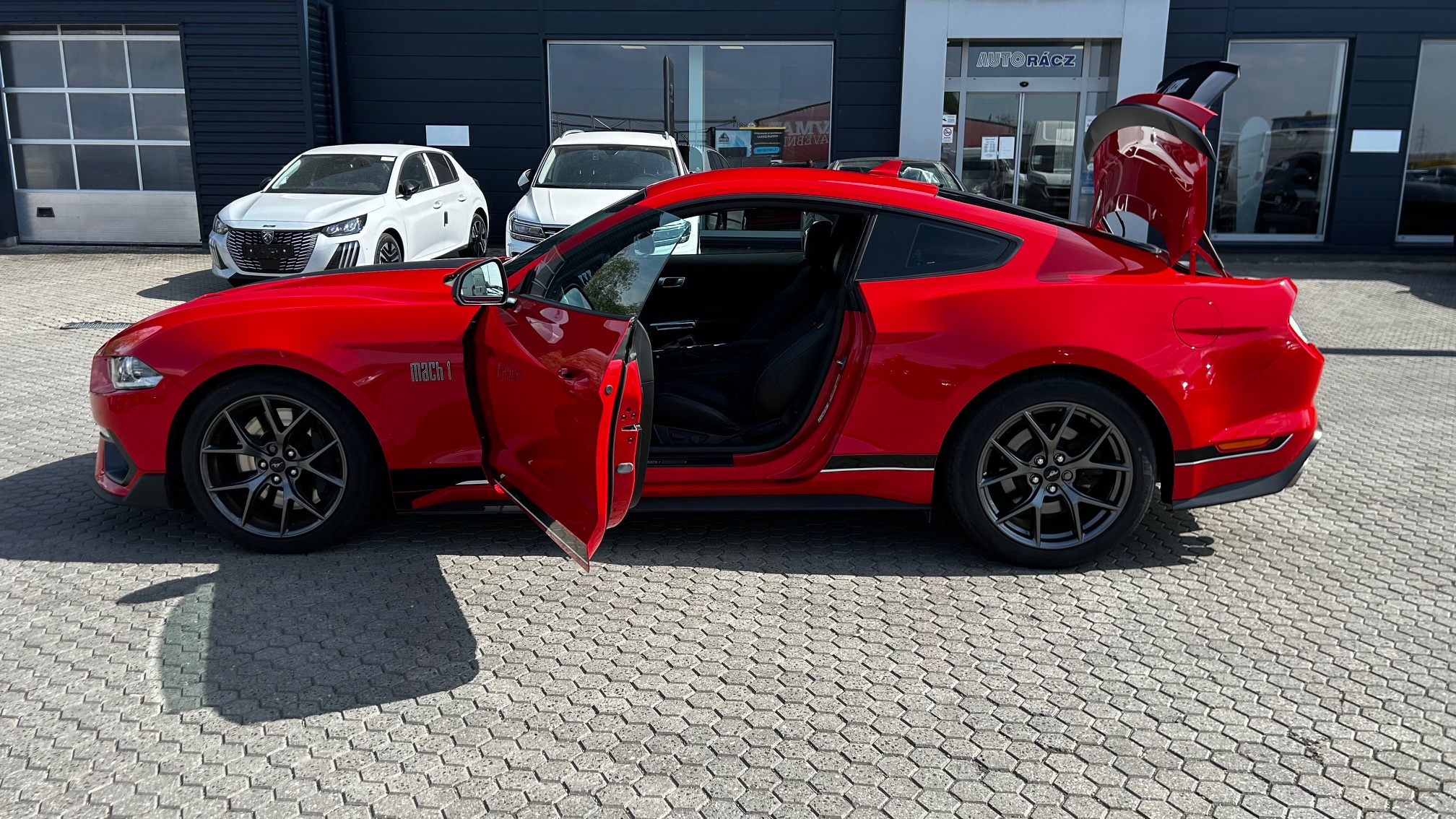 Aktívna dvojstupňová regulácia výfuku elektronicky riadené klapky výfuku s reguláciou hlasitosti zvuku + tichý režim, EPAS - elektrický posilňovač riadenia s variabilným účinkom + nastaviteľné režimy posilňovača, Elektricky ovládané predné okná s impulznou funkciou, Elektricky vyhrievané a ventilované predné sedadlá s nastaviteľnou intenzitou, Exteriérová sada MACH 1 naviac oproti verzii GT - trojfarebný polep kapoty (3 varianty podľa zvoleného laku karosérie) - športové pruhy v spodnej časti vozidla (3 varianty podľa zvoleného laku karosérie) - unikátna horná a spodná mriežka chladiča - znak MACH 1 na predných blatníkoch - tvarovanie predného nárazníka včetne odbočovacích svetiel (zo Shelby GT350) - tvarovanie zadného difúzora (zo Shelby GT500) - zadný spojler v matnom vyhotovení, Hliníkové športové pedále, Kožené čalúnenie sedadiel SALERNO MACH 1 v čiernom vyhotovení so šedým kontrastným pruhom - vyhrievané a ventilované predné sedadlá, LDW + LKA LDW - varovanie pred nemyselným opustením jazdného pruhu LKA - systém pre automatické navracanie do jazdného pruhu, MACH 1 Performance sada naviac oproti verzii GT - TREMEC® manuálna prevodovka testovaná pre odolnosť na okruhových závodoch a posilnenie systému olejového chladenia ( zo Shelby GT350 ) - vylepšený prenos točivého momentu automatickej prevodovky optimalizovaný pre vysoký výkon (kalibrované pre športové radenie) včetne posilneného systému olejového chladenia - posilnené chladenie zadnej nápravy ( zo Shelby GT500 ) - predný a zadný rám nápravy ( zo Shelby GT 350 ) a zadná spojovacia tyč ( zo Shelby GT 500 ) pre presné radenie - zväčšenie, Ozdobné kryty prahov predných dverí, Predné Full LED svetlomety LED DRL predné svetlá funkciou denného svietenia + auto-funkcia zapnutia svetlometov + dažďový senzor + monochromatické vnútorné spätné zrkadlo, Zadný nárazník s difúzorom, Športové brzdy GT Performance so 6-piestikovými strmeňmi Brembo 15' (380mm) brzdovými kotúčmi na prednej náprave, Športové odpruženie